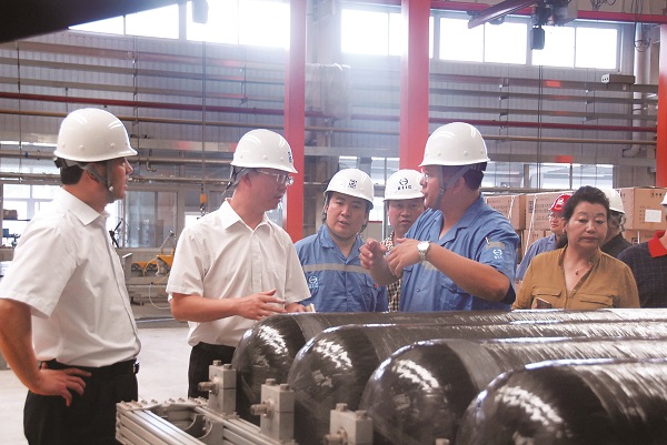 8月15日,西藏拉薩市黨組副書記、副市長暴劍一行到我司參觀考察。暴劍副市長一行參觀了醫用氧氣呼吸器展品和鋁內膽全纏繞復合氣瓶加工車間,充分了解了產品的性能、參數和加工生產過程,對產品的輕質、高壓、外觀等先進特性和生產現場規范化管理、生產設備先進性及產品加工質量給予高度評價,并明確表達了合作意向,同時邀請控股公司盡快組織相關人員赴西藏對項目進行考察。控股公司總經理王國華也明確表示,希望天海公司和拉薩市相關企業充分利用各自的資源和優勢,合作共贏,為將來提高西藏地區的旅游業服務水平,改善藏區人民的生活水平共同努力,為藏區人民謀福祉,為首都人民爭榮耀。